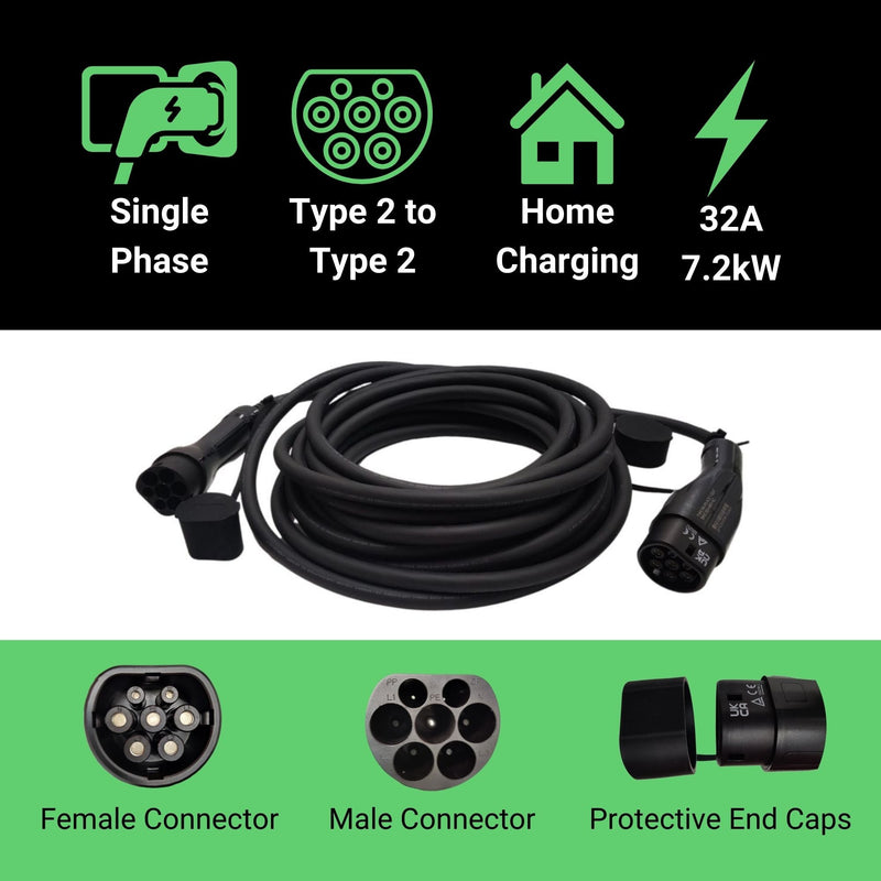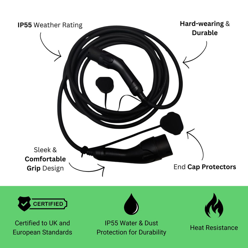 Depending on your situation, you may need to consider purchasing a cable with an increased length. Fortunately, at EVwired we offer 7 metre and 10 metre cables alongside the more frequently seen 5 metre cables. Three-phase options are available at each length.